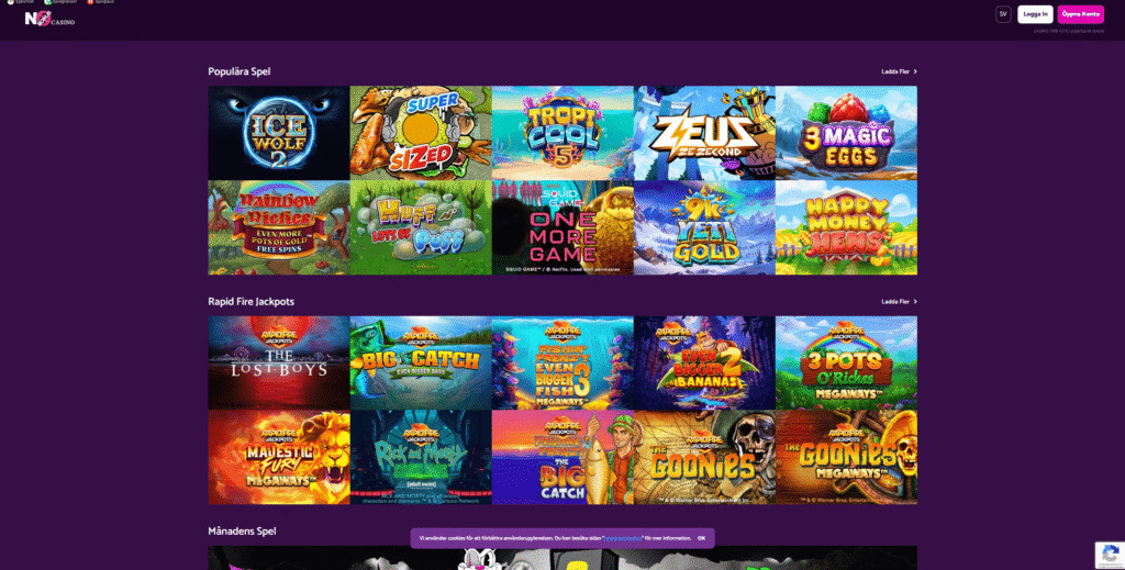 | Providers | Pragmatic Play, Play'n GO, Big Time Gaming och andra |